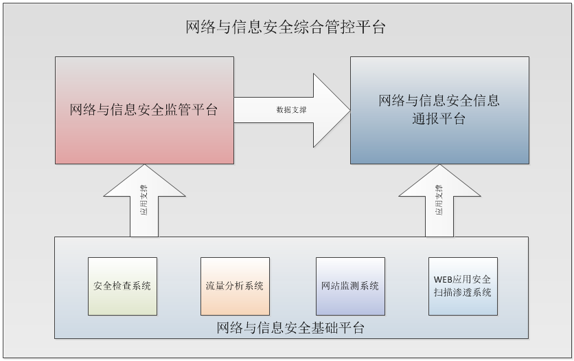 管控平臺工程是搭建省、市級網(wǎng)絡(luò)與信息安全基礎(chǔ)平臺、監(jiān)管平臺和通報平臺。即建設(shè)信息安全檢查、網(wǎng)絡(luò)流量分析、網(wǎng)站監(jiān)測、Web應(yīng)用安全掃描滲透、安全預(yù)警及響應(yīng)、數(shù)據(jù)采集、在線培訓(xùn)考試、資產(chǎn)管理、知識管理和信息通報等工作于一體的綜合管理平臺。